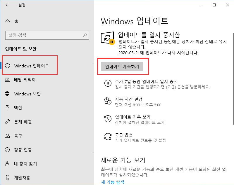 3 단계. Windows 업데이트를 클릭하고 업데이트 계속하기 옵션을 클릭하여 Windows 업데이트를 시작하십시오.